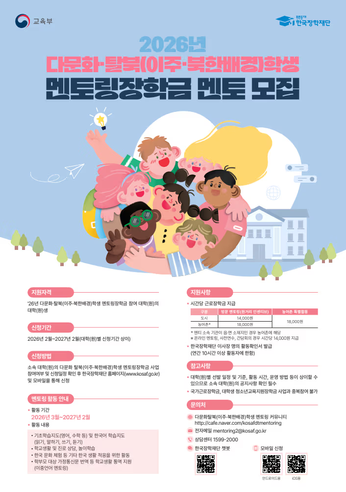 다문화·탈북학생 멘토링장학금 멘토 모집